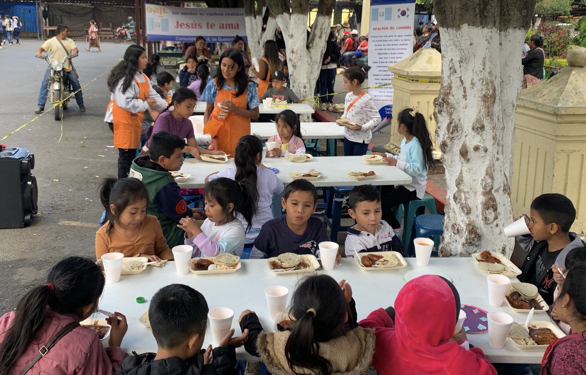 남아메리카과테말라 다일공동체는 2020년 12월 코비드속에 전염병과 생계를 위해 원주민 마을에서 치말떼낭고 도시로 내려온 5~15세의 아동과 청소년들을 대상으로 무상급식 사업을 시작했습니다. 하루 한끼도 제대로 먹지 못하고 길거리에서 마스크와 손뜨개 소품, 땅콩, 사탕과 껌을 들고 다니며 팔아 생계를 이어가는 도시빈민 청소년들은 배가 고파 갱단으로 들어가기도 했습니다. 아이들이 점점 많아져 200명이 넘어갈 때 2023년부터 글로벌어린이재단의 지원을 받게 되었습니다. 밥퍼에 오는 아이들을 데리고 호프 스쿨을 시작하여 생계가 어려워 학교에 가지 못하는 아동과 청소년들에게 뒤떨어진 학업을 도와 학교로 돌아갈수 있도록 도울 수 있었습니다.